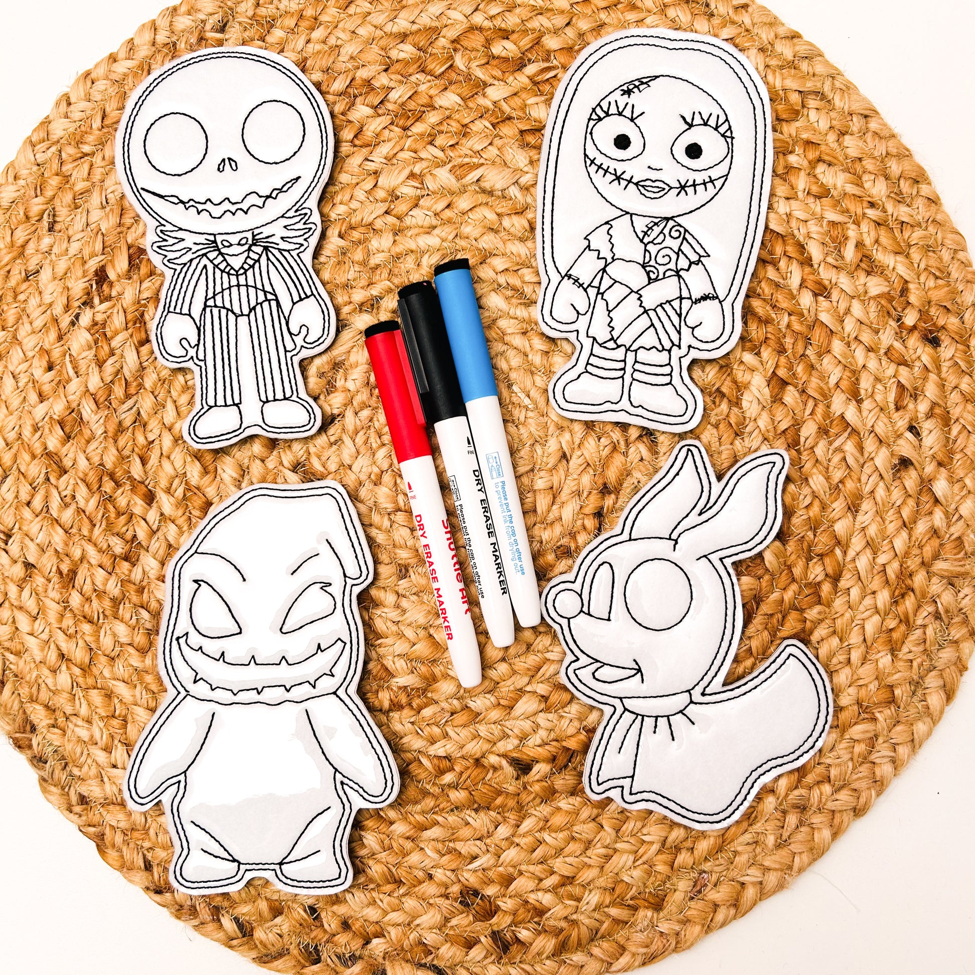Our Doodle doll sets are vinyl characters with dry erase markers. Simply colour and wipe off with the eraser on the end of the marker or paper towel for endless hours of colouring fun. They are the perfect quiet time activity, great for waiting at appointments, for travel or to keep little ones busy while you prepare dinner. Each set includes three characters and three markers. Please note, marker colours will vary in each set.