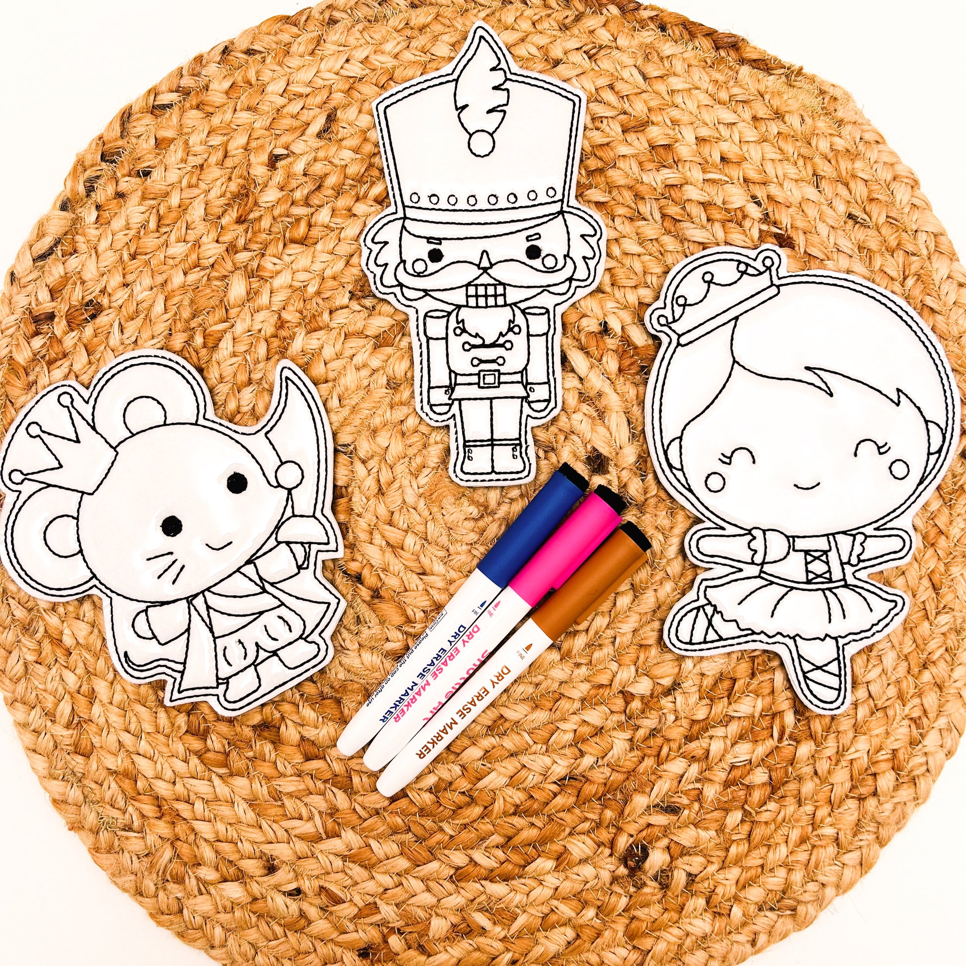 Our Doodle doll sets are vinyl characters with dry erase markers. Simply colour and wipe off with the eraser on the end of the marker or paper towel for endless hours of colouring fun. They are the perfect quiet time activity, great for waiting at appointments, for travel or to keep little ones busy while you prepare dinner. Each set includes three characters and three markers. Please note, marker colours will vary in each set.