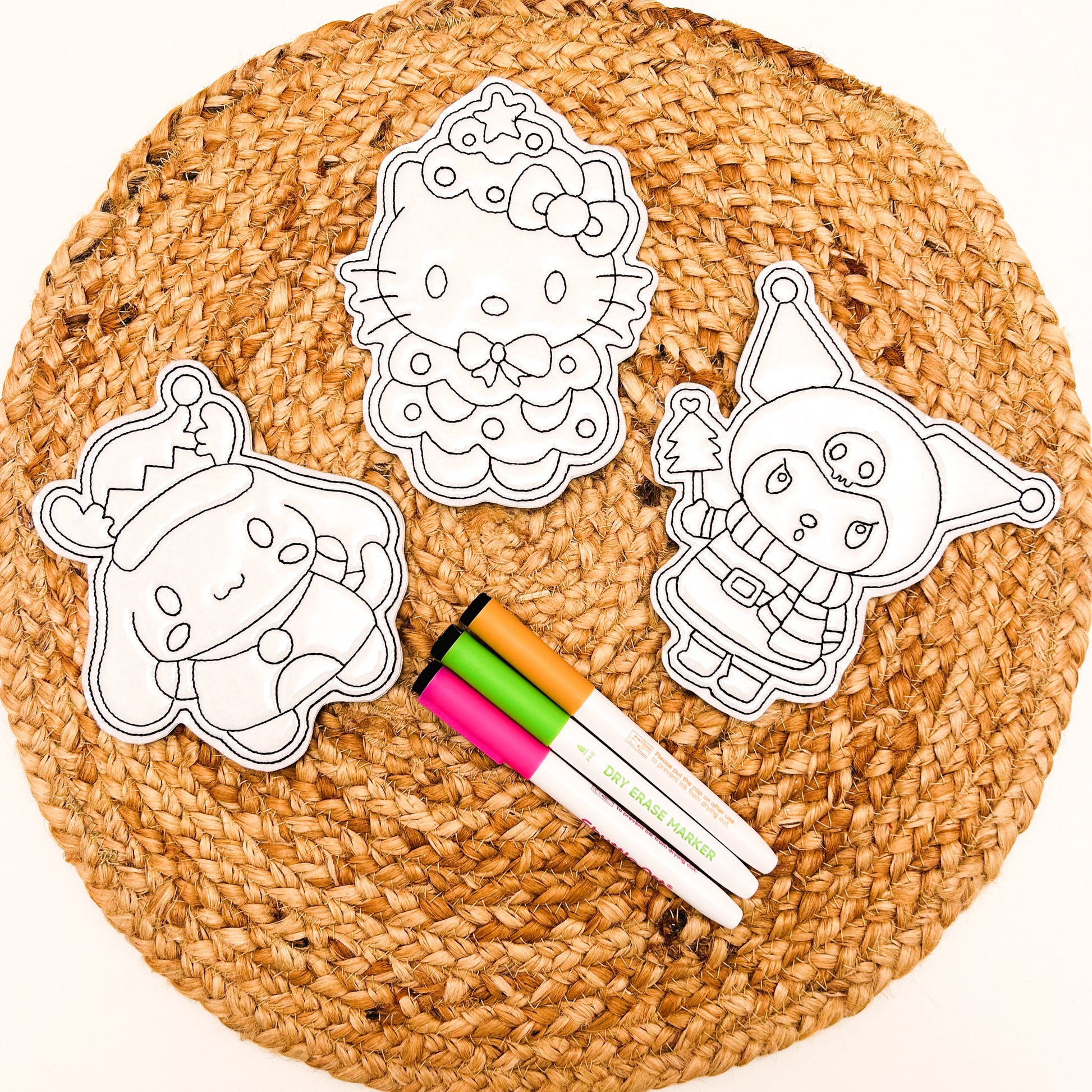 Our Doodle doll sets are vinyl characters with dry erase markers. Simply colour and wipe off with the eraser on the end of the marker or paper towel for endless hours of colouring fun. They are the perfect quiet time activity, great for waiting at appointments, for travel or to keep little ones busy while you prepare dinner. Each set includes three characters and three markers. Please note, marker colours will vary in each set.
